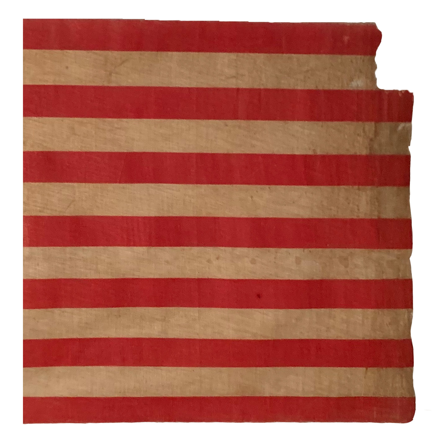 Antique American National Flag printed on glazed cotton exhibits 44 Stars in rows of 8-7-7-7-8 to form an attractive “hourglass” pattern with its stars in a tumbling arrangement within each row to give it a folksy appeal.